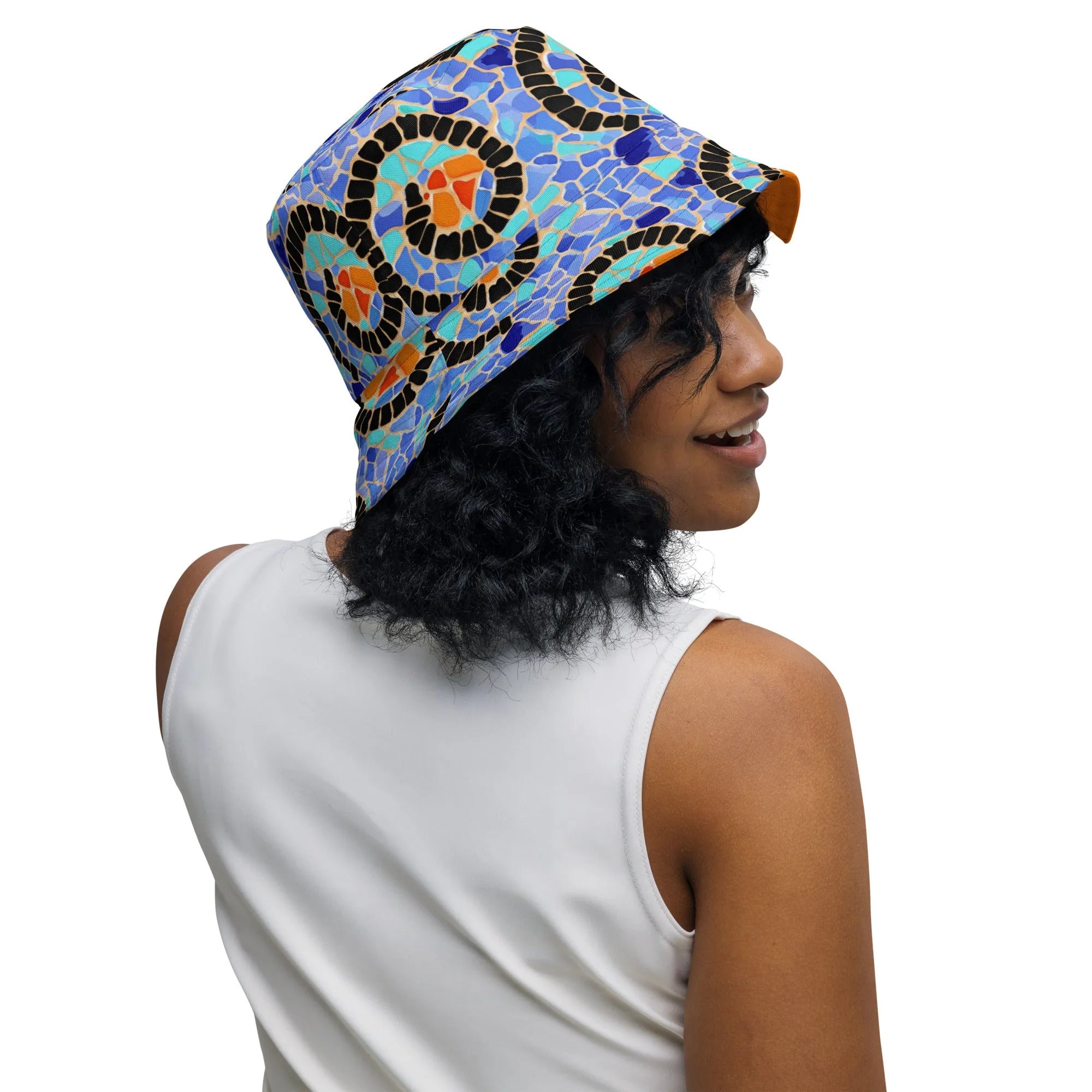 Shield yourself in style with the Reus Twirl Reversible Bucket Hat. Featuring a bold broken-tile design inspired by the sun-drenched mosaics of Parc Güell, this hat brings Modernist flair to your outdoor adventures. Lightweight, breathable, and built to block rays—it’s your go-to for staying cool under the Mediterranean sun or wherever your travels take you.