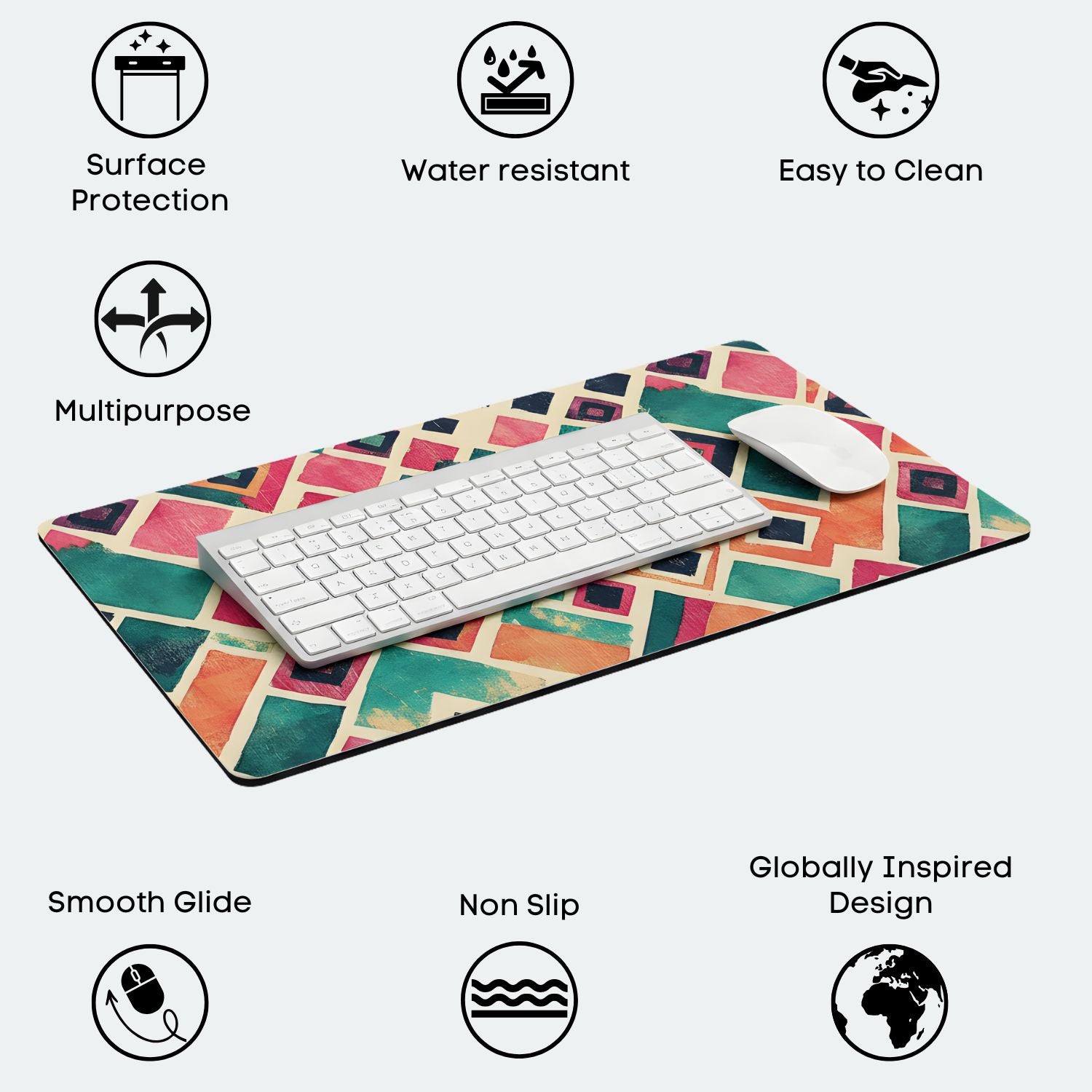 Upgrade your workspace with a globally inspired desk mat that blends bold design with everyday function. Made from 100% neoprene, this patterned desk mat delivers a smooth glide surface for effortless movement and a non-slip rubber base that keeps everything firmly in place. Built for real life, it offers surface protection, a water-resistant finish, and easy spot cleaning, making it the ideal desk mat for office setups and creative corners alike. Practical, versatile, and thoughtfully crafted, it’s one of those desk accessories that transforms your space instantly.