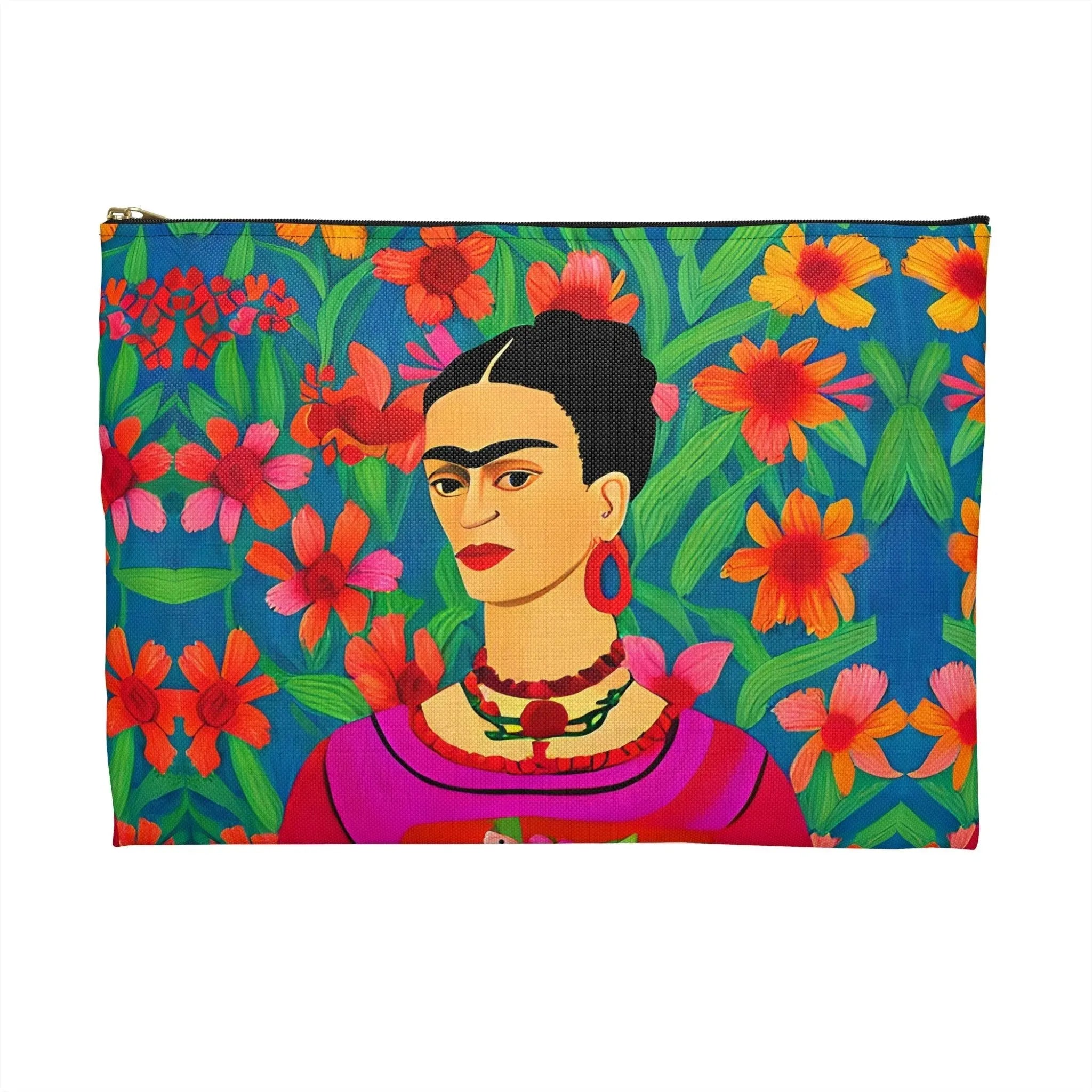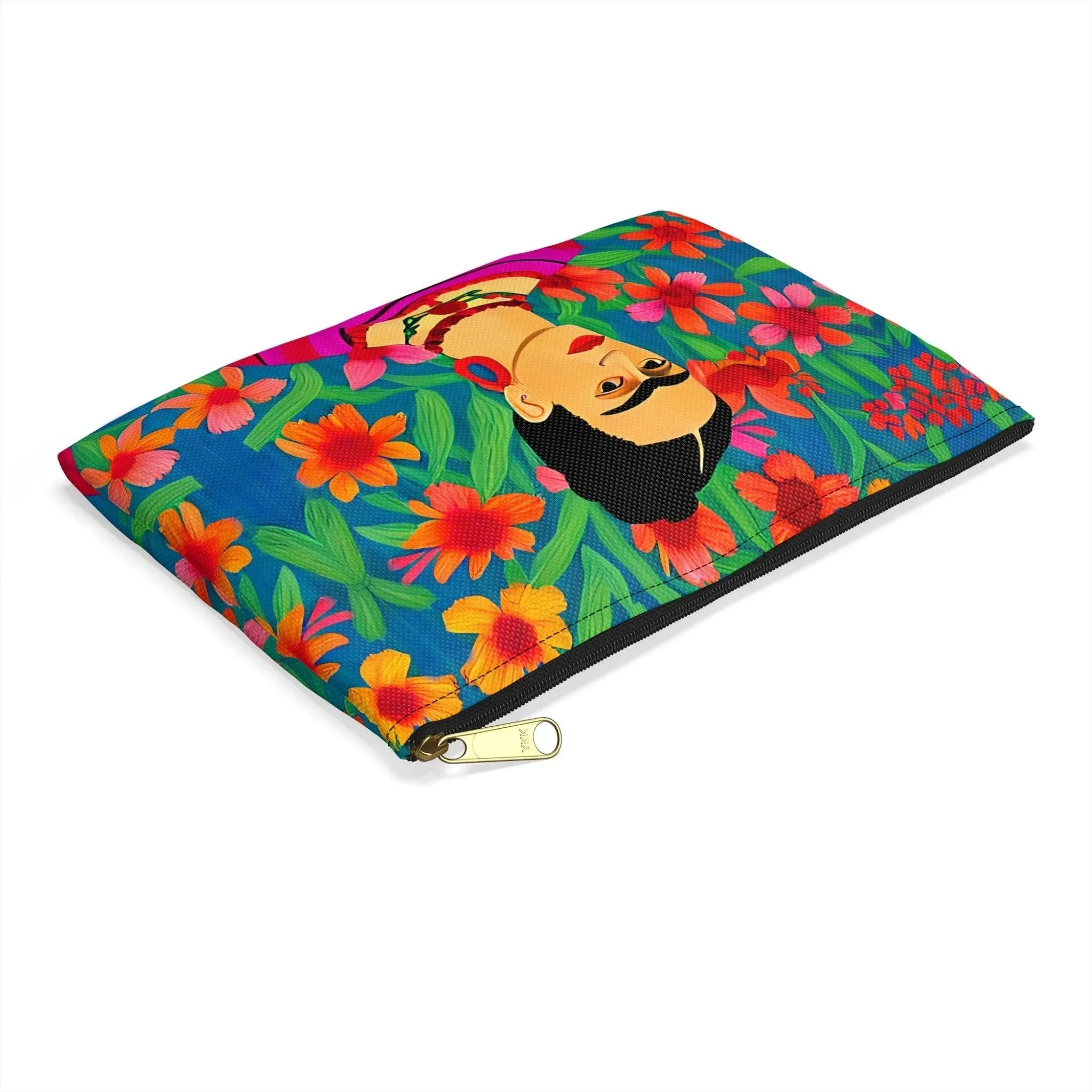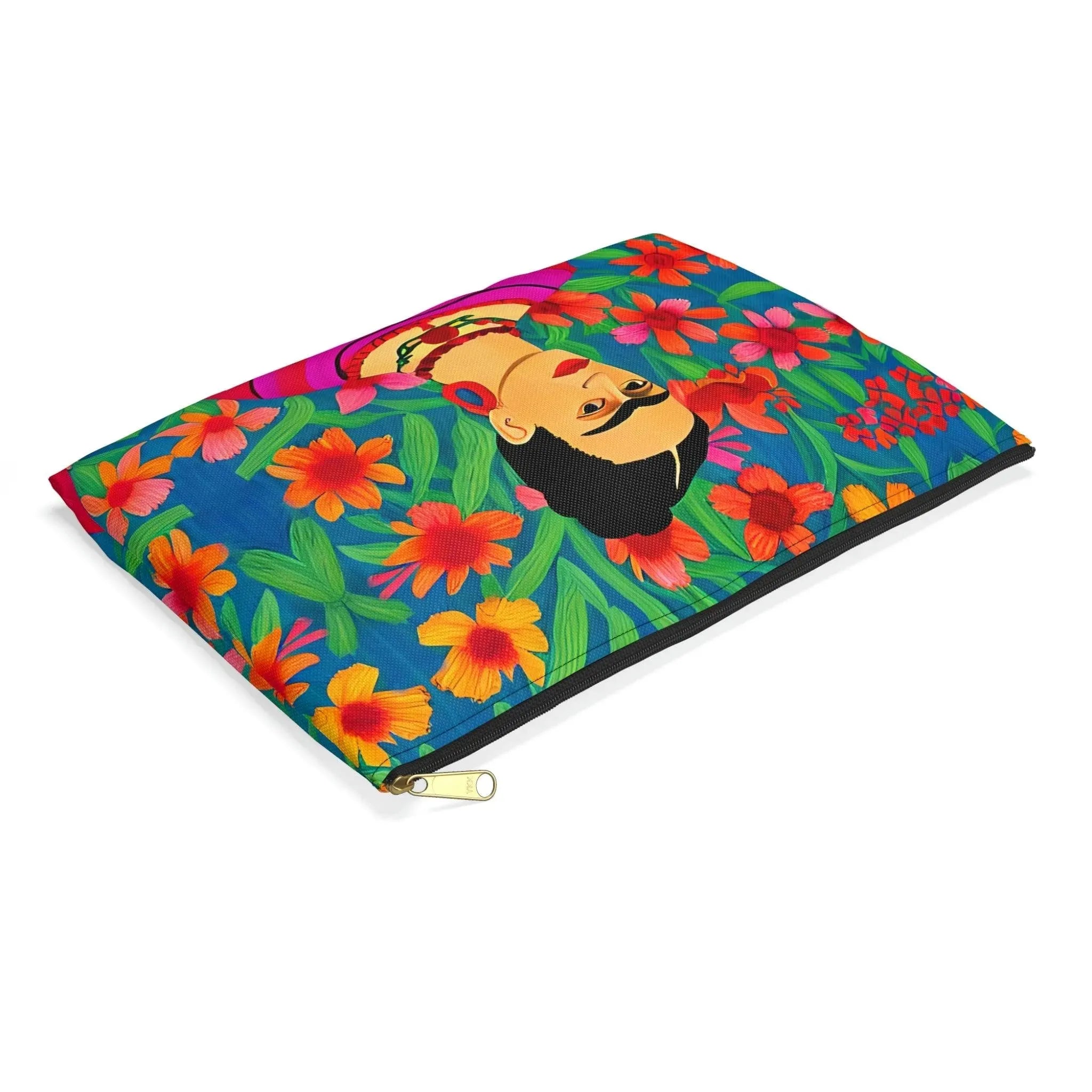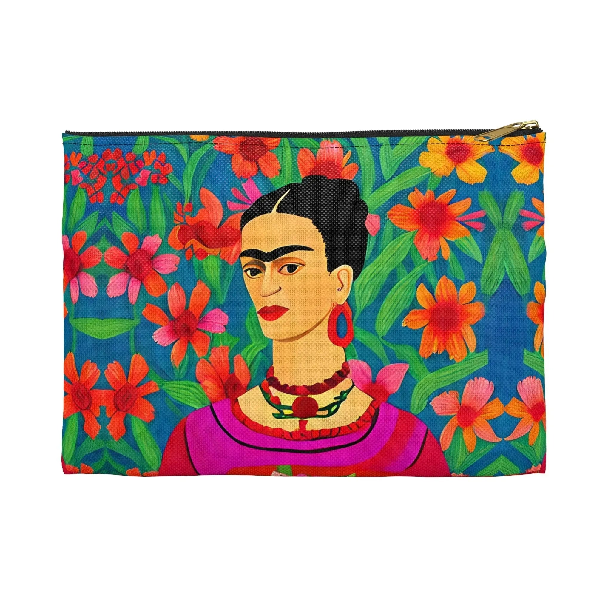 Inspired by the vibrant and expressive spirit of the iconic Mexican artist Frida, this bold design pouch is a true work of art. Featuring a beautifully crafted painting of Frida's unmistakable face, this pouch is perfect for anyone who loves her bold and colorful style.