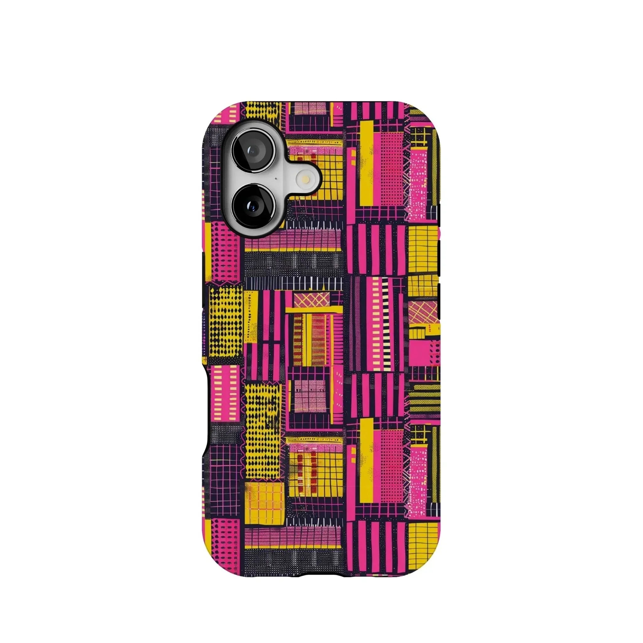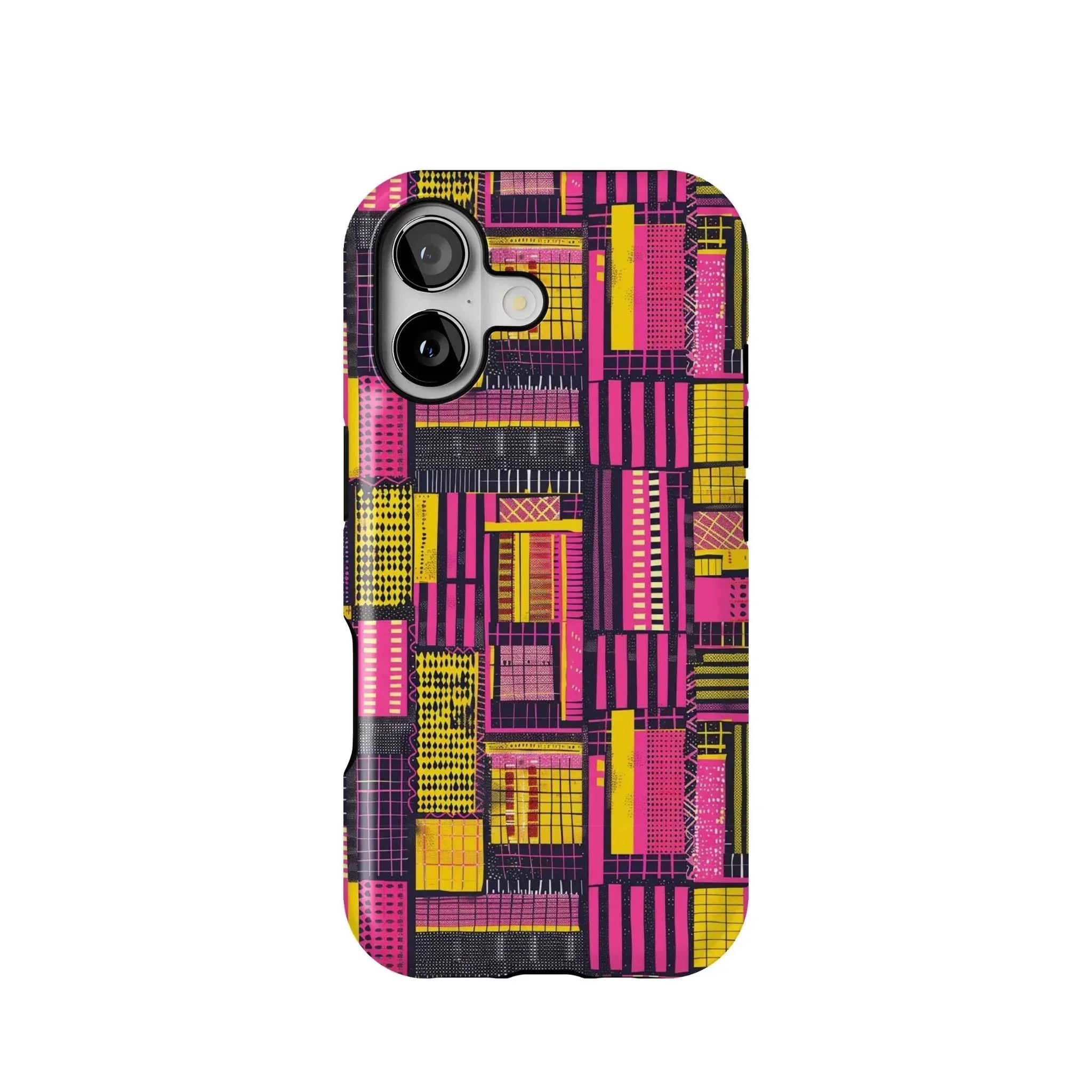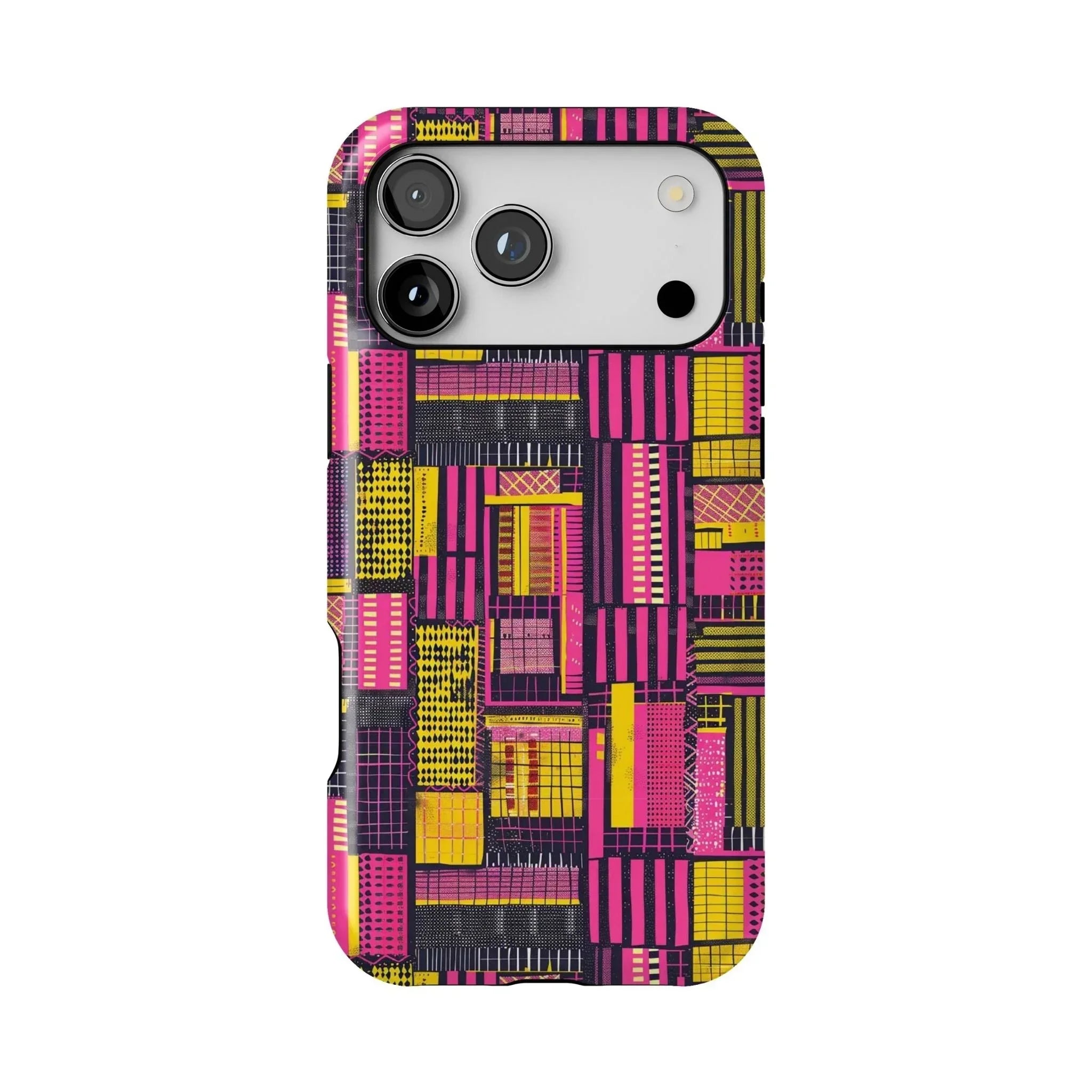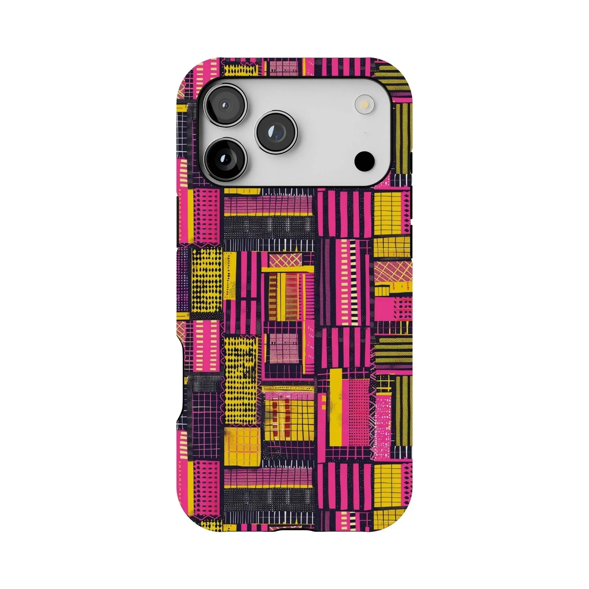 Inspired by the vibrant patterns of traditional Ghanaian Kente Cloth, this Accra Blush Kente Cloth iPhone Case protects your phone with cultural elegance, merging iconic heritage with a modern pink twist.
