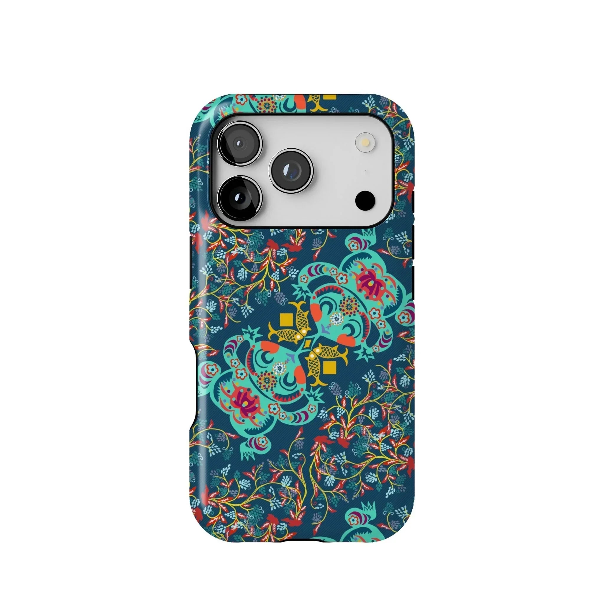 Inspired by traditional Chinese cultural elements of Baoji, Shaanxi folk art this toad and flowery design iPhone case will draw people's attention instantly.