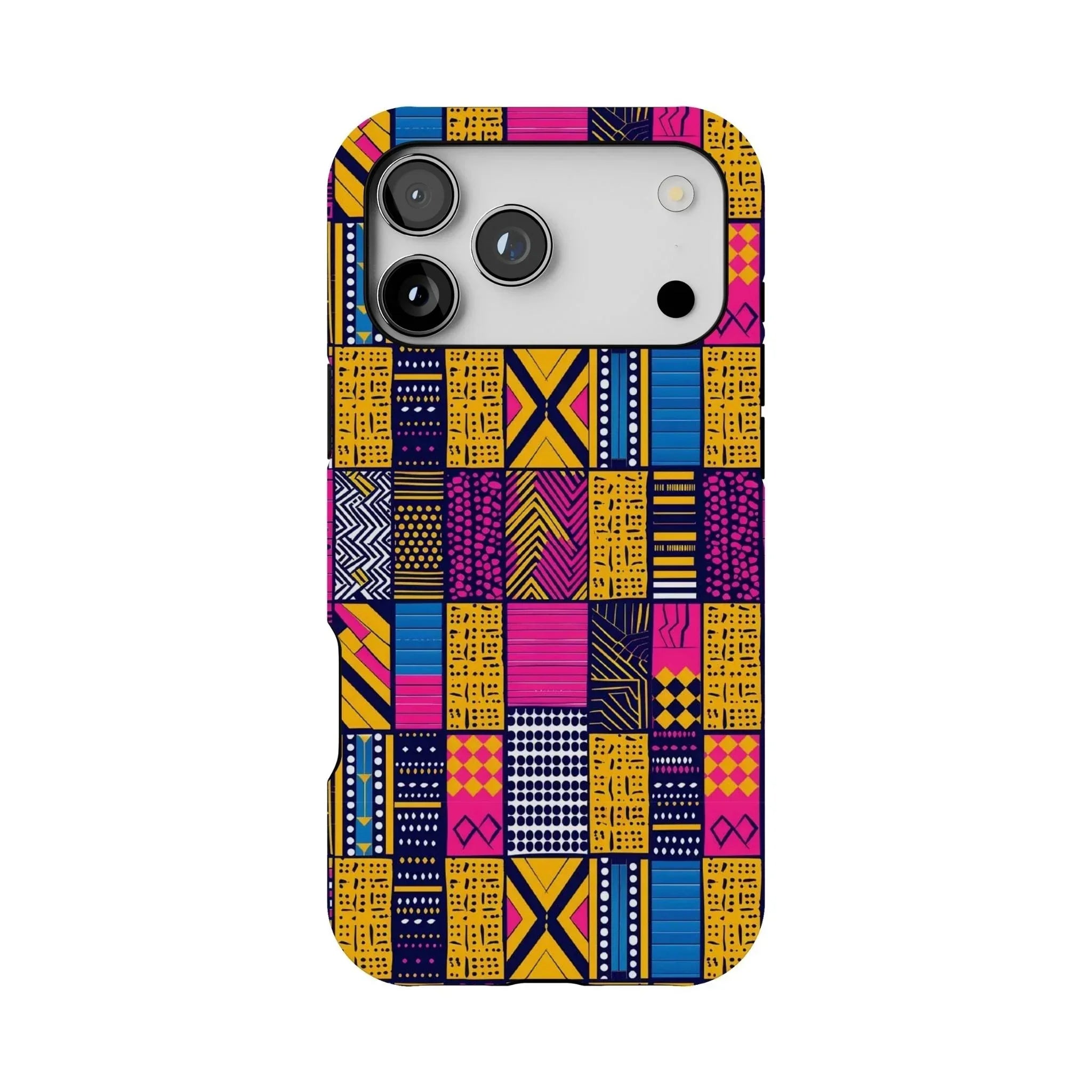 Inspired by the vibrant patterns of traditional Ghanaian Kente Cloth, this iPhone case adds a pop of culture and style to your daily essentials. With its unique pink-toned design, it’s not just protection for your phone—it's a statement piece!