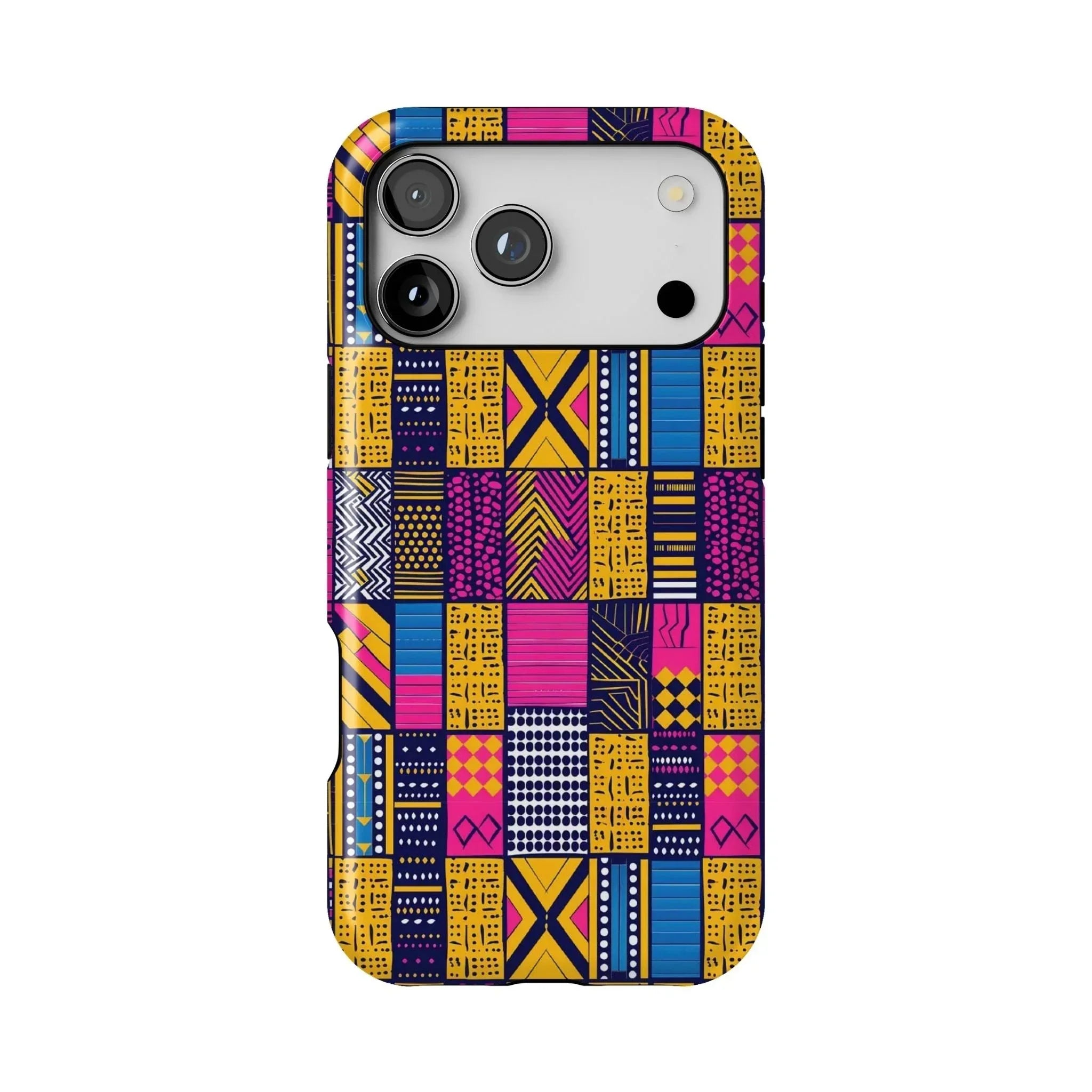 Inspired by the vibrant patterns of traditional Ghanaian Kente Cloth, this iPhone case adds a pop of culture and style to your daily essentials. With its unique pink-toned design, it’s not just protection for your phone—it's a statement piece!