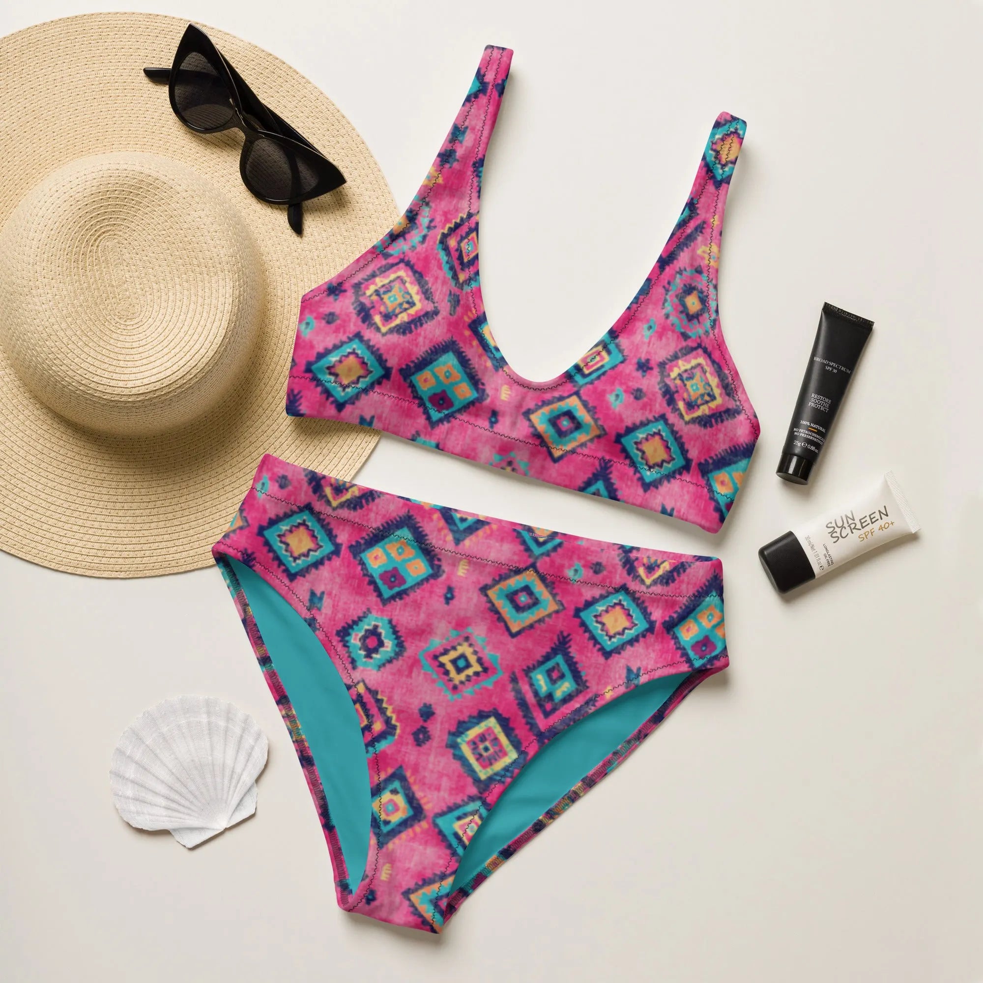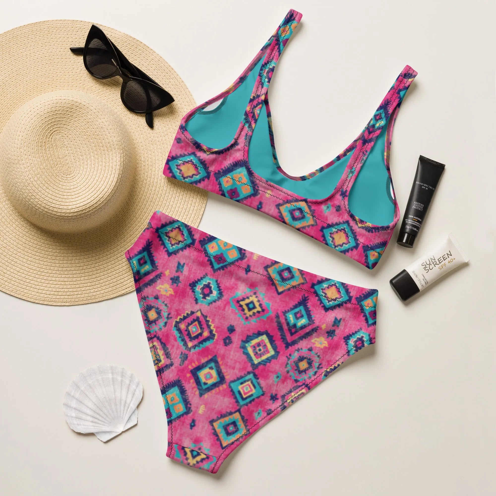 This bikini is destined to become the only swimsuit you'll want to reach for in your drawer! The bottoms are high-waisted, and the top has removable pads. Both come with a tear-away care label. Made of recycled materials (like plastic bottles and packaging) but still with all the characteristics and performance of a regular polyester, making it a more sustainable fabric alternative. You'll want to wear it all day by the pool or at the beach!